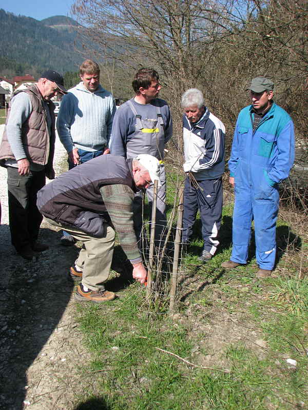 V petek 14.marca 2014 smo se sadjarji zbrali na kmetiji KRILEZ na Ljubnem ob 10:00uri. Tukaj nam je dipl. ing. Adrijan Černelč najprej teoretično nakazal, kako se izvede takšna rez, nato pa še praktični prikaz, ki je razviden v video posnetku. Na koncu pa smo še šli obrezat lansko leto nasajena drevesa ob Ljubnici.