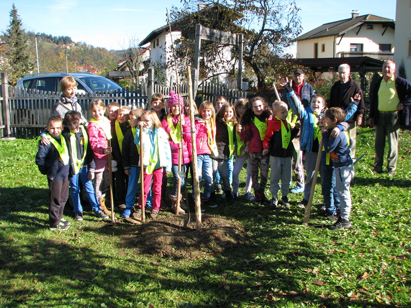 V torek 3. novembra smo z učenci OŠ Mozirje skupaj posadili sadno drevo – češnjo. Ob lepem sončnem dnevu je vse skupaj potekalo prijetno in v zadovoljstvo nas vseh. Upamo, da učenci tega dogodka ne bodo pozabili, še posebno, ker smo jim obljubili, da bodo skupaj z nami sadjarji za drevo morali skrbeti. Obrezovati, obirati in gnojiti, da bo v kondiciji in da bo rodilo kar se da debele in zdrave plodove. Na koncu jim je naš predsednik poklonil album z slikami iz predhodnega obiska v šolskem sadnem vrtu. Učenci pa so mu podarili lastnoročno naslikano risbico z podpisi vseh učencev. Takega sodelovanja si še želimo in upamo, da se pomladi spet vidimo. O poteku akcije pa zgovorno priča video posnetek in galerija slik.