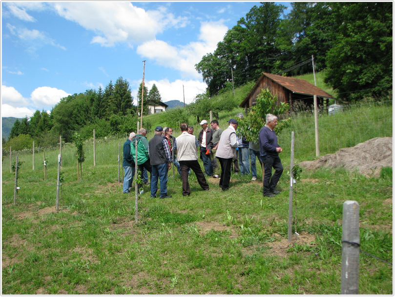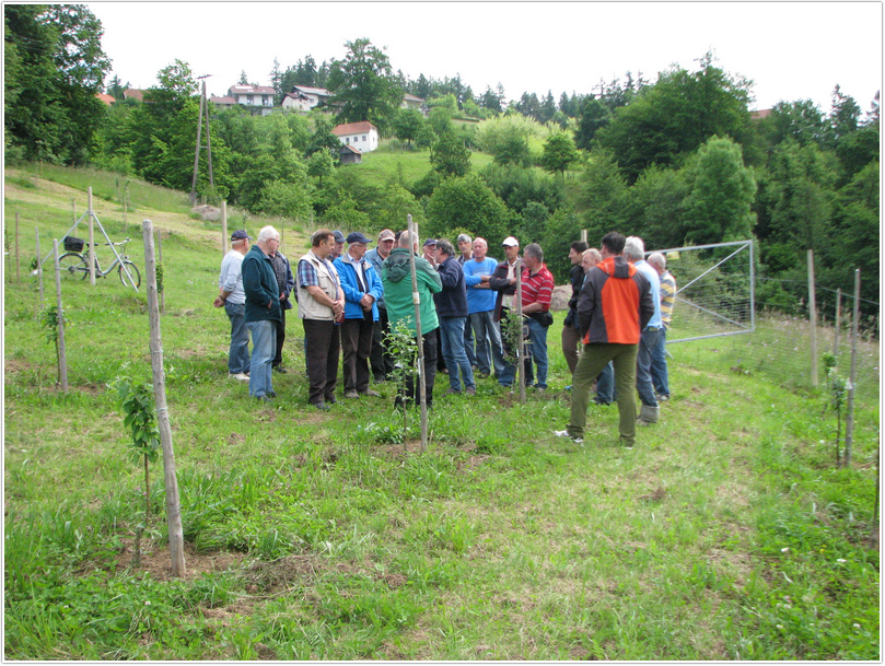 Tudi letos je naše društvo organiziralo strokovni prikaz letnih opravil v sadovnjaku. To je čas, ko je sadno drevje v najbolj bujnem razraščanju in je vegetacija na višku. V tem letnem času se pojavi največ bolezni in tudi razni škodljivci se zelo razmnožijo. Predavanje je vodil naš član Bogdan Fuerst dipl. ing. agronomije. Letos je bilo predavanje razdeljeno na dva dela. Prvi del je bil v Šolskem sadnem vrtu na Tratah v Mozirju od 9. do 10. ure, drugi pa v novem Učnem sadovnjaku pod Rožnikom od 10.15 do 11.15 ure. Udeležba članov je bila dobra, kar je razvidno z fotografij.