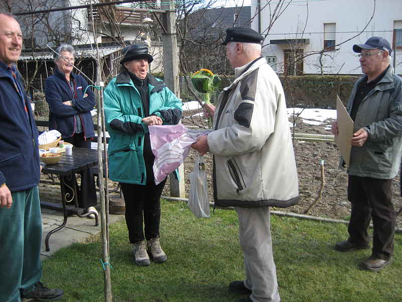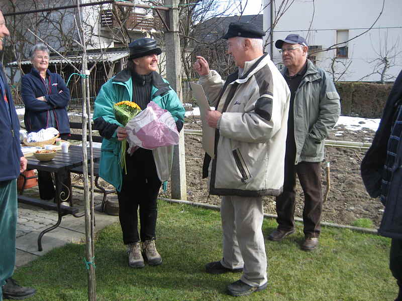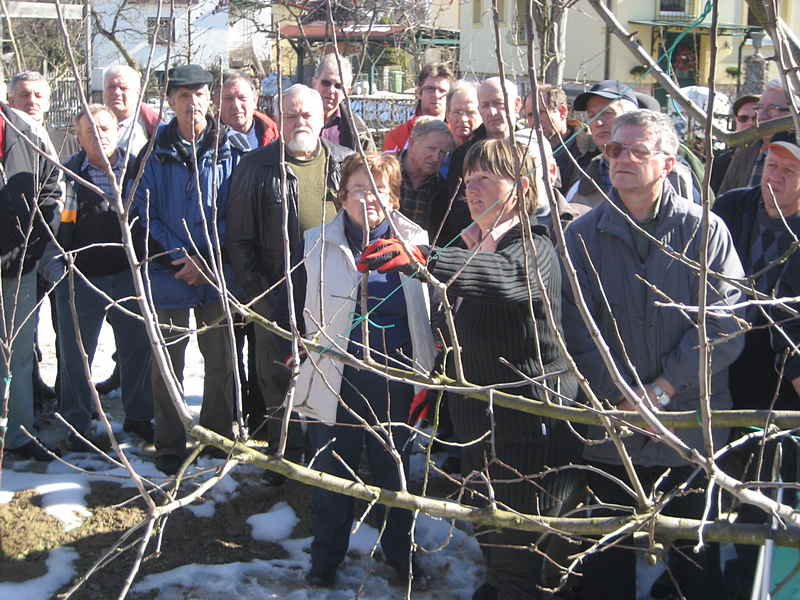 V petek 8. marca  ob 10. uri dopoldan smo se člani in ostali ljubitelji sadnega drevja sestali v Šolskem  sadnem vrtu na Tratah v Mozirju. Tamkaj nam je g. mag. Zlatka Gutman Kobal  praktično z škarjami in žagico prikazala, kako se pravilno obreže sadno drevo. Nato pa smo se prestavili v sadni vrt našega člana Franca Ločana, kjer je pregledala njegovo sadno drevje in podala  kaj je pravilno obrezano in kaj ne, seveda z dobronamernim komentarjem.Na koncu pa ji je predsednik v imenu vseh članov podaril šopek rožic  ob Dnevu žena, katerega je bila zelo vesela. Vse pa je lepo razvidno iz priložene galerije slik, katere je prispeval predsednik g. Alojz Plaznik