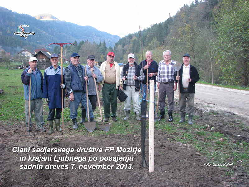 V četrtek 7. novembra so člani našega društva posadili sadna drevesa ob Ljubnici. Asortiment dreves je bil pester: od jablan, hrušk in češenj. vsega 20 dreves. Nasad drevoreda financira Občina Ljubno ob Savinji z namenom, da se ohrani tradicija vzgoje visokodebelnih sadnih dreves, ki v sedanjem “modernem” času počasi izginjajo iz travniških nasadov predvsem zaradi načina košnje in obdelave travniških zemljišč. Ta drevored bo služil tudi kot tematska učna pot za turiste, predvsem pa za osnovnošolsko mladino. Kako je naše delo potekalo, pa je razvidno z priloženim filmčkom in pa galerijo slik.