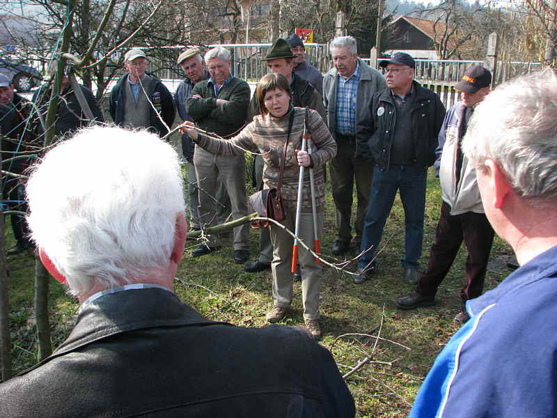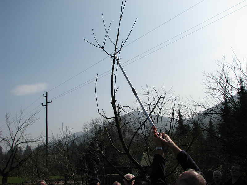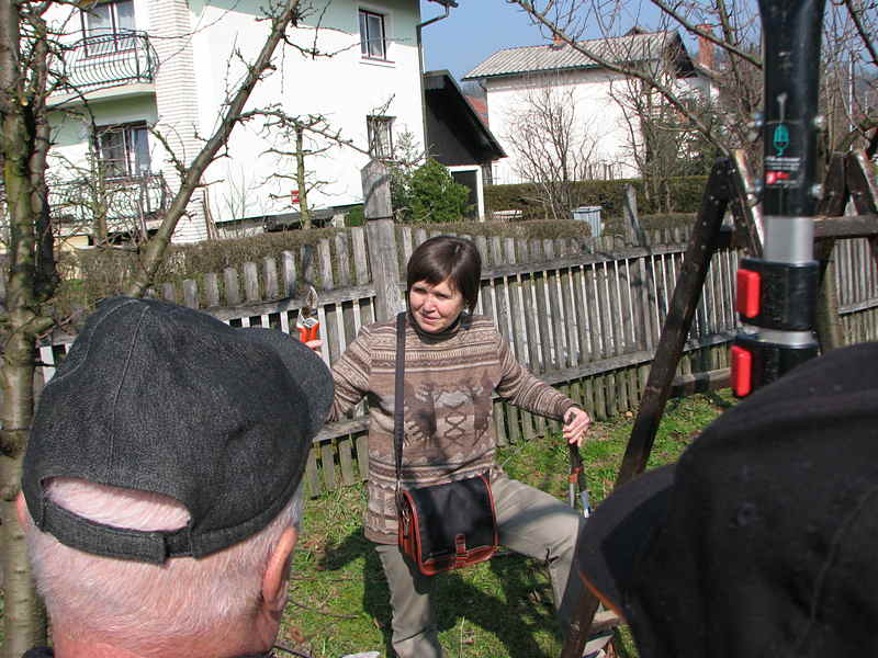 V teoretičnem delu nam je pojasnila, kaj lahko storimo pri gnojenju in osnovni oskrbi sadovnjakov, nato pa smo se preseli v Šolski sadni vrt, kjer nam je tudi v praksi prikazala kako se obreže določeno sadno drevo.