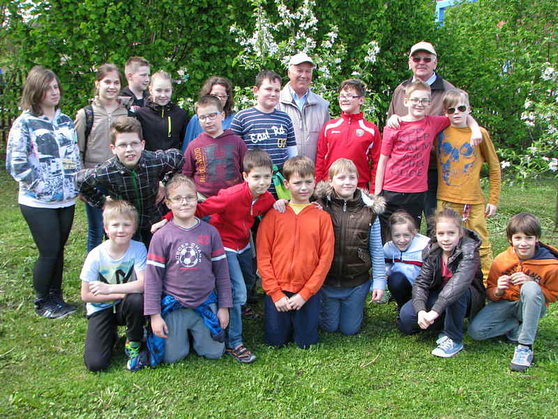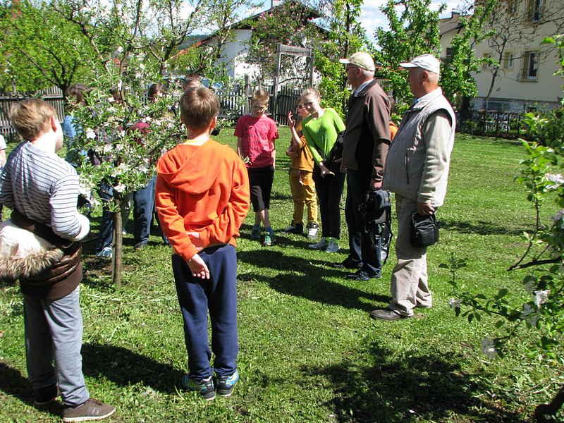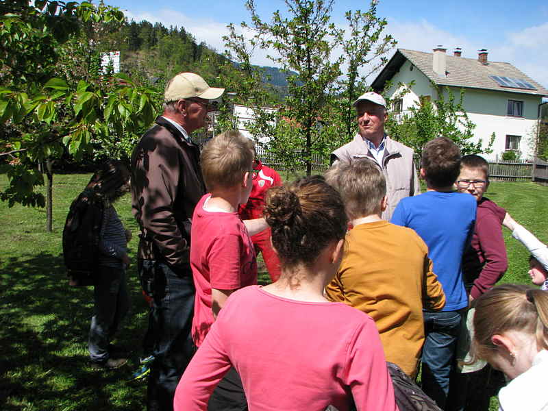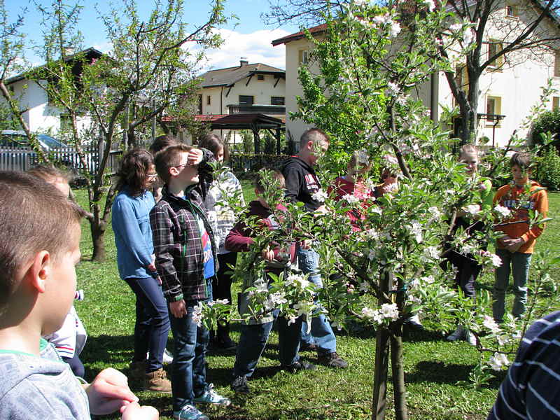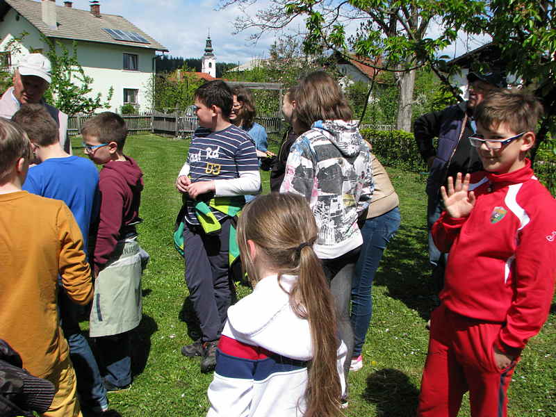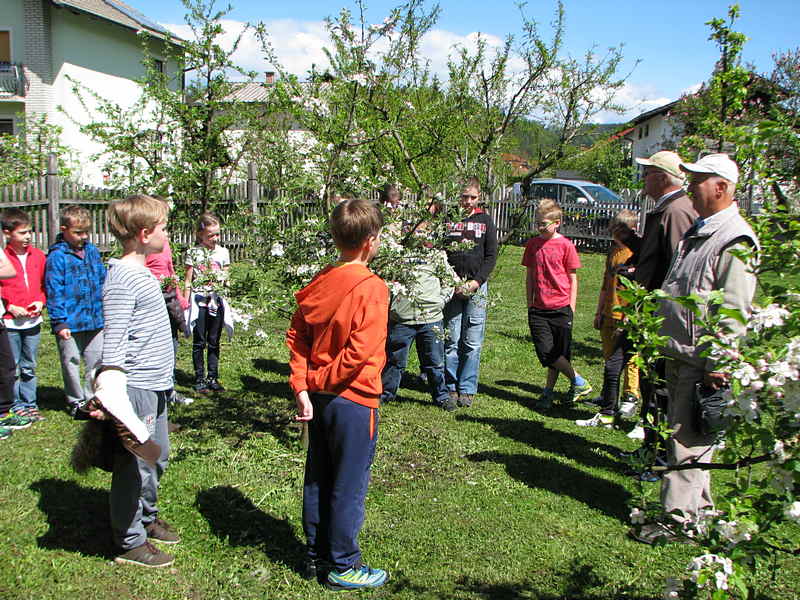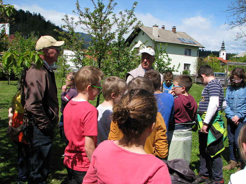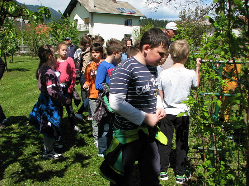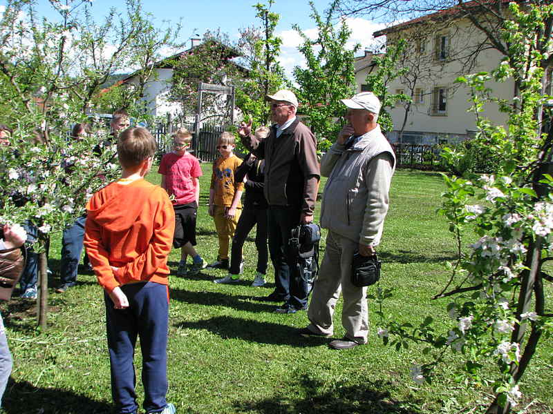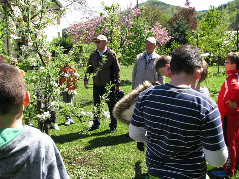 Popoldne ob 13:15 uri pa so nas obiskali mladi čebelarji, ki delujejo kot krožek na osnovni šoli Mozirje. Njihov mentor g.Marko Purnat je poprosil našega predsednika g. Alojza Plaznika da kot strokovnjak na področju sadjarstva pojasni mladim čebelarjem pomen opraševanja sadnega drevja, katero pa v pretežnem delu opravljajo prav čebele. Poudaril je, da moramo sadjarji izredno paziti pri škropljenju sadnega drevja, da ne pride do zastrupitve čebel. V nadaljevanju pa je izrazil željo, da bi na šoli organizirali tudi sadjarski krožek, z namenom, da bi mladi znali ceniti delo na področju sadjarstva, katerega so ustvarili njihovi dedki in starši.