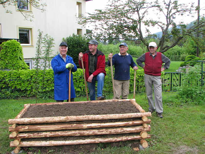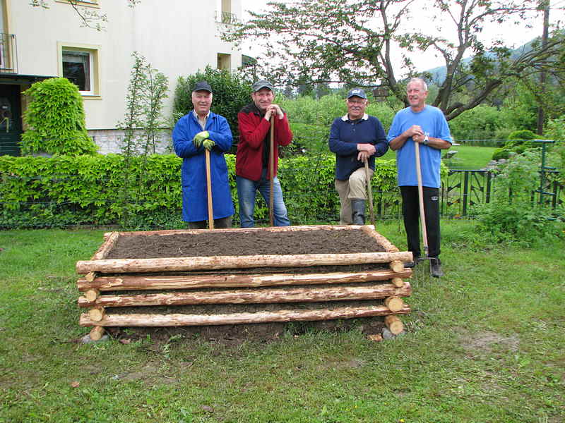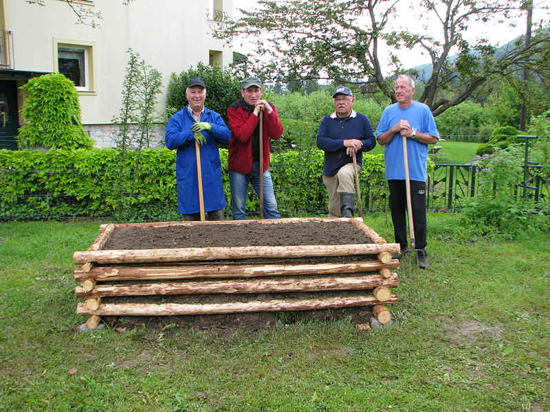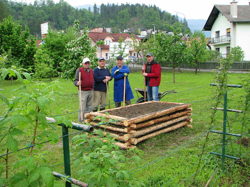 Na začetku sta bila prisotna tudi mentorica in učenec z osnovne šole Mozirje. Kljub na trenutke slabemu vremenu smo nadaljevali  z polnjenjem visoke grede do predzadnje faze. Zaključni del polnjenja in posaditve bomo prepustili mentorici in učencem Osnovne šole Mozirje.