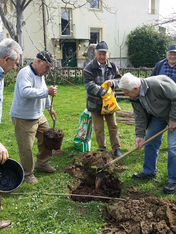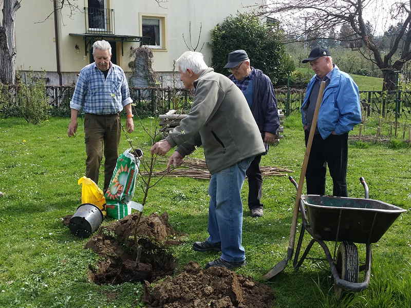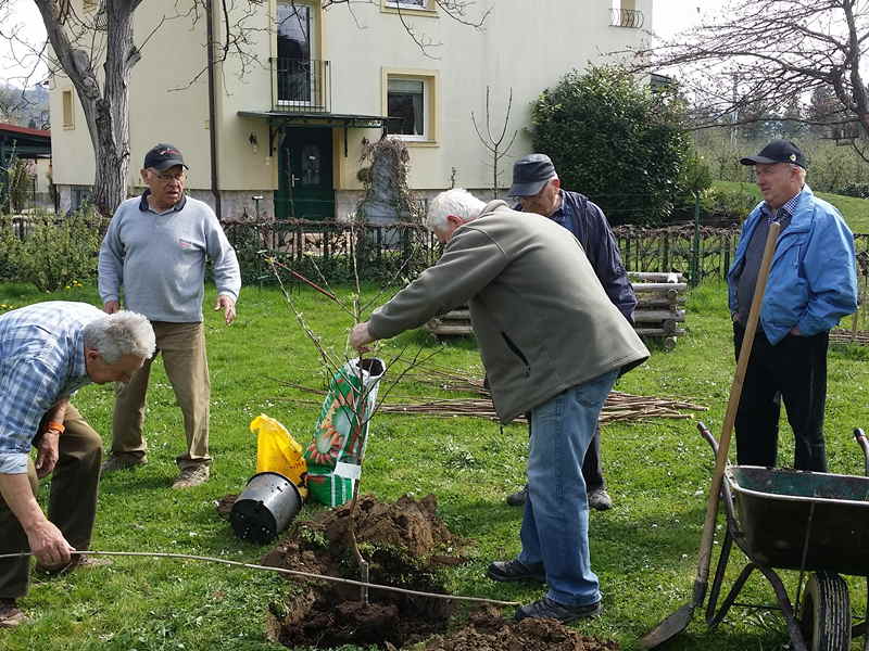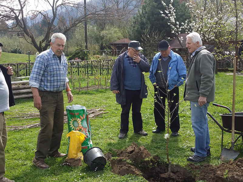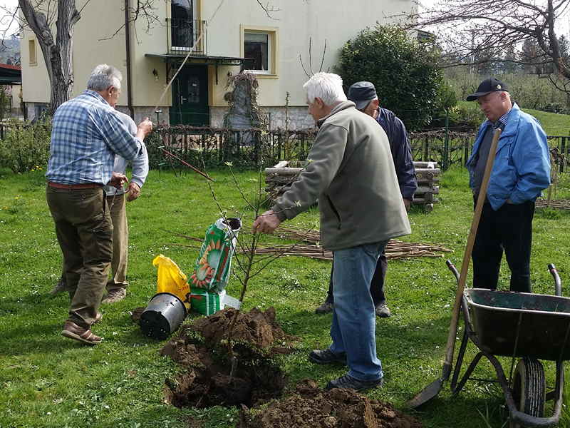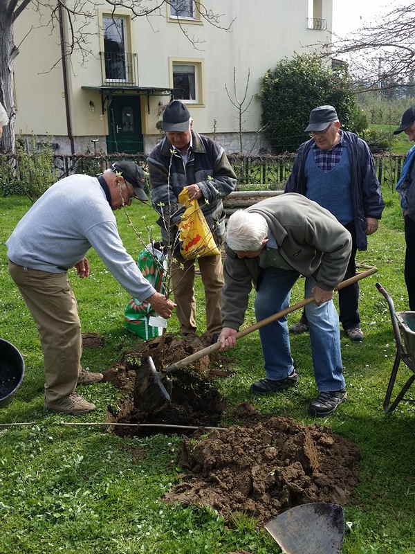 Danes smo uredili gredo za posaditev jabolčnih semen. pospravili po vrtni lopi in presadili sadike jabolk .