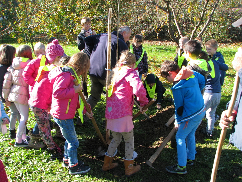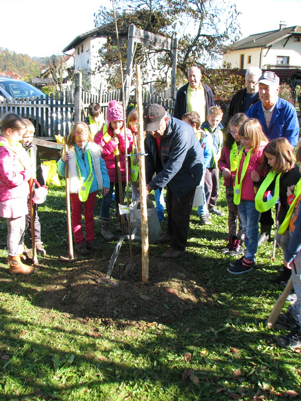 V torek 3. novembra smo z  učenci OŠ Mozirje skupaj posadili sadno drevo – češnjo. Ob lepem sončnem dnevu je vse skupaj potekalo prijetno in v zadovoljstvo nas vseh. Upamo, da učenci tega dogodka ne bodo pozabili, še posebno, ker smo jim obljubili, da bodo skupaj z nami sadjarji za drevo morali skrbeti. Obrezovati, obirati in gnojiti, da bo v  kondiciji in da bo rodilo  kar se da debele in zdrave plodove. Na koncu jim je naš predsednik poklonil album z slikami iz predhodnega obiska v šolskem sadnem vrtu. Učenci pa so mu podarili lastnoročno naslikano risbico z podpisi vseh učencev. Takega sodelovanja si še želimo  in upamo, da se pomladi spet vidimo. O poteku akcije pa zgovorno priča video posnetek in galerija slik.