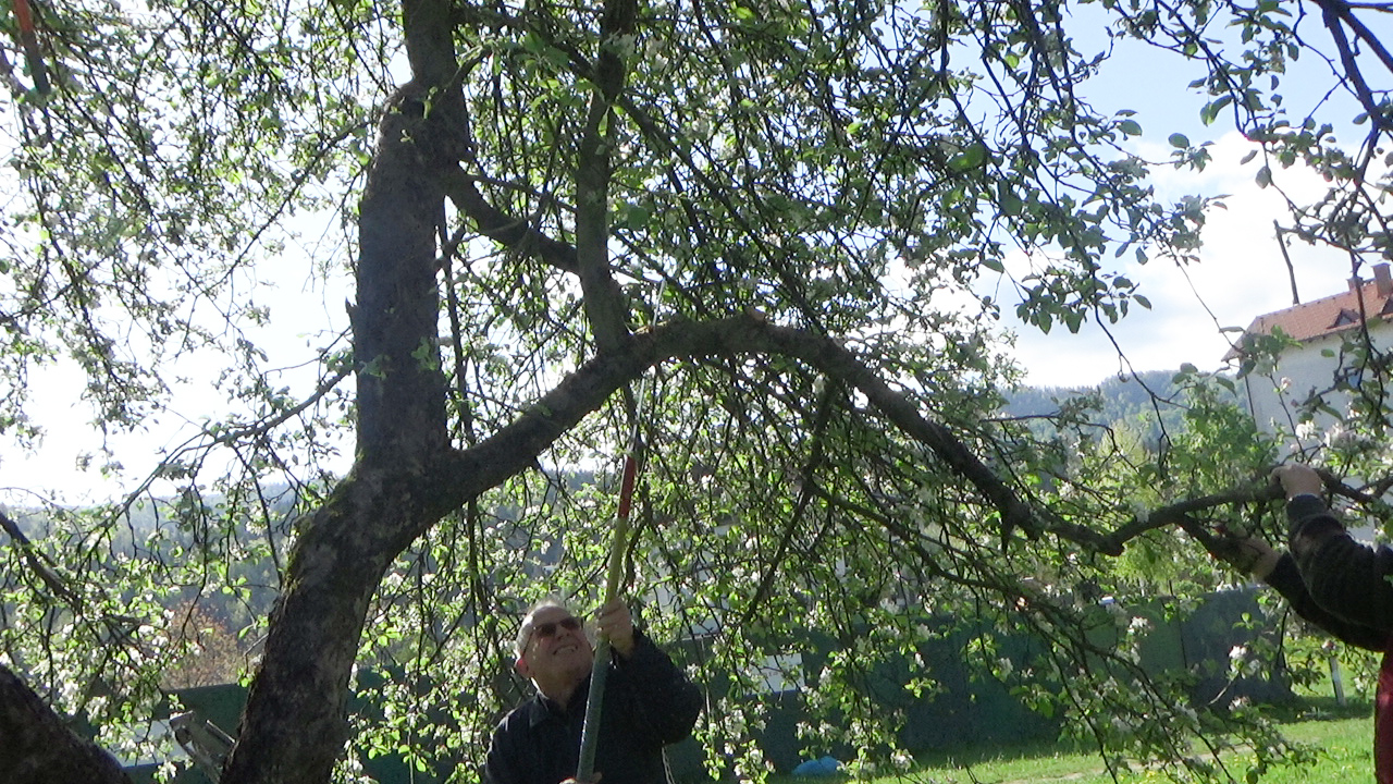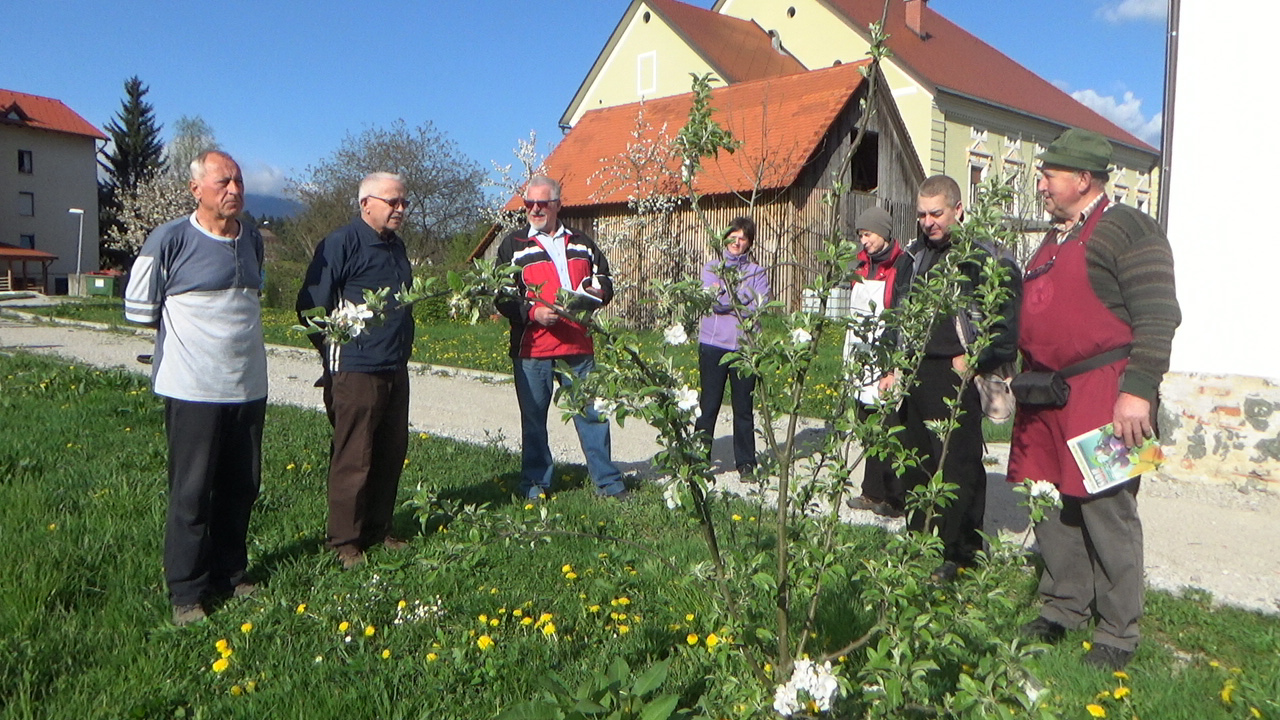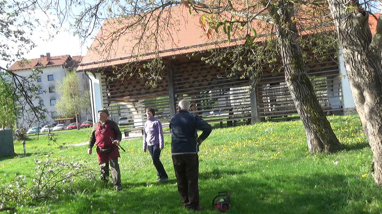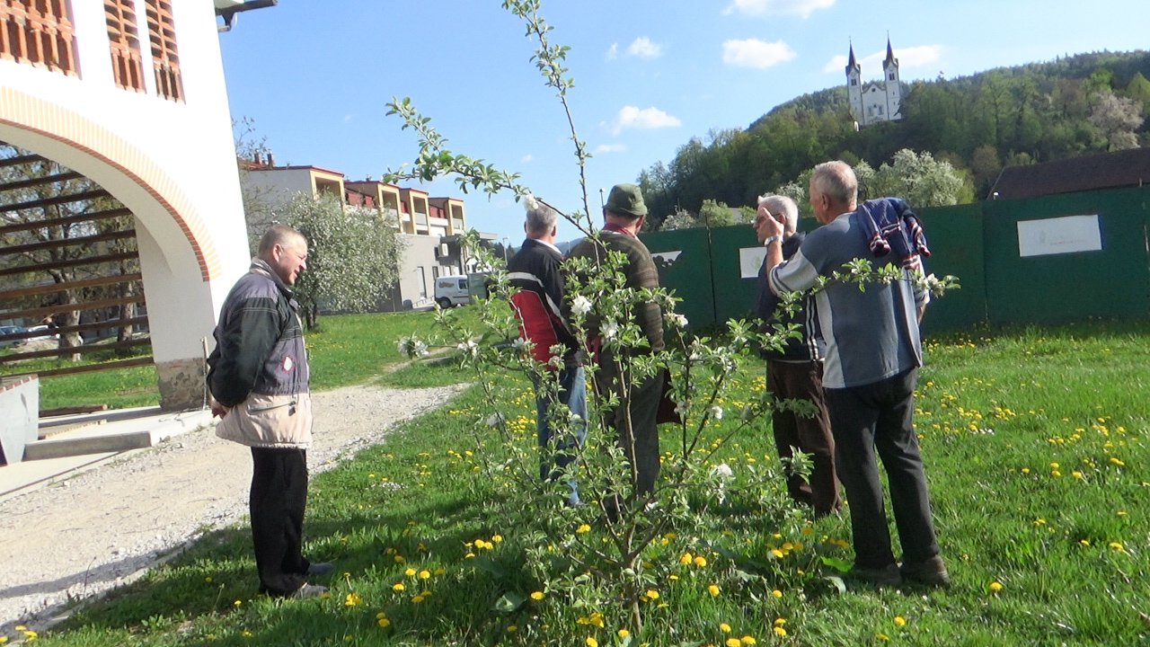 V soboto 16.aprila smo bili s strani vodje nazarskih  branjevcev gospe Anice Bider povabljeni, da prikažemo obrezovanje sadnega drevja. Ob tržnici Bohačev toplar v Nazarjah namreč rastejo tri sadna drevesa jablane. Dve sta starejši in jih je verjetno posadil prejšnji lastnik parcele, ki ja pozneje bila prodana za gradnjo stanovanjskega objekta. Tretje pa je ob izteku svojega mandata ob priliki Občinskega praznovanja leta 2012 slavnostno posadil g. dr. Danilo Turk. Drevo lepo raste in letos pričakujejo že prve plodove, če bodo vremenske prilike to dopuščale. Vso dogajanje pa je razvidno iz posnetkov.
