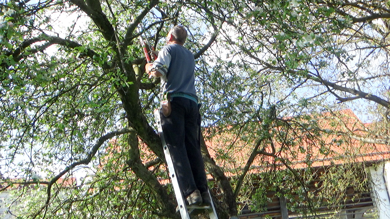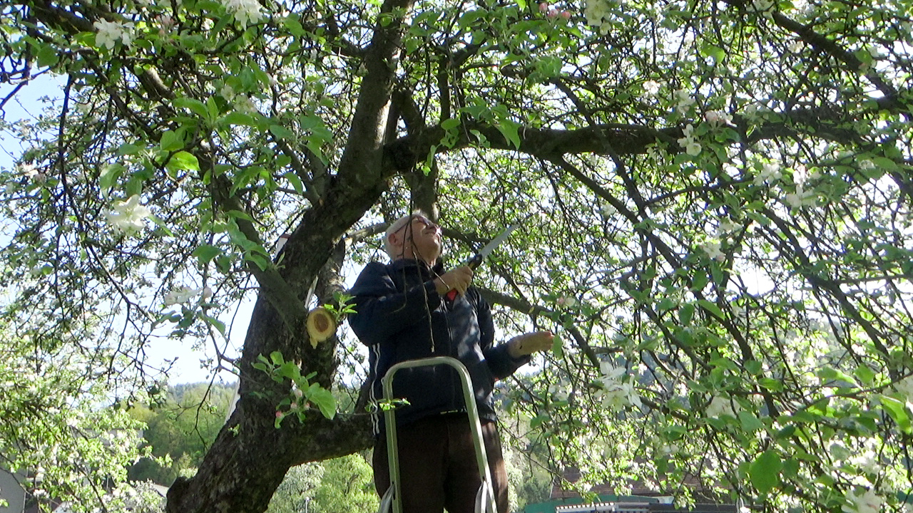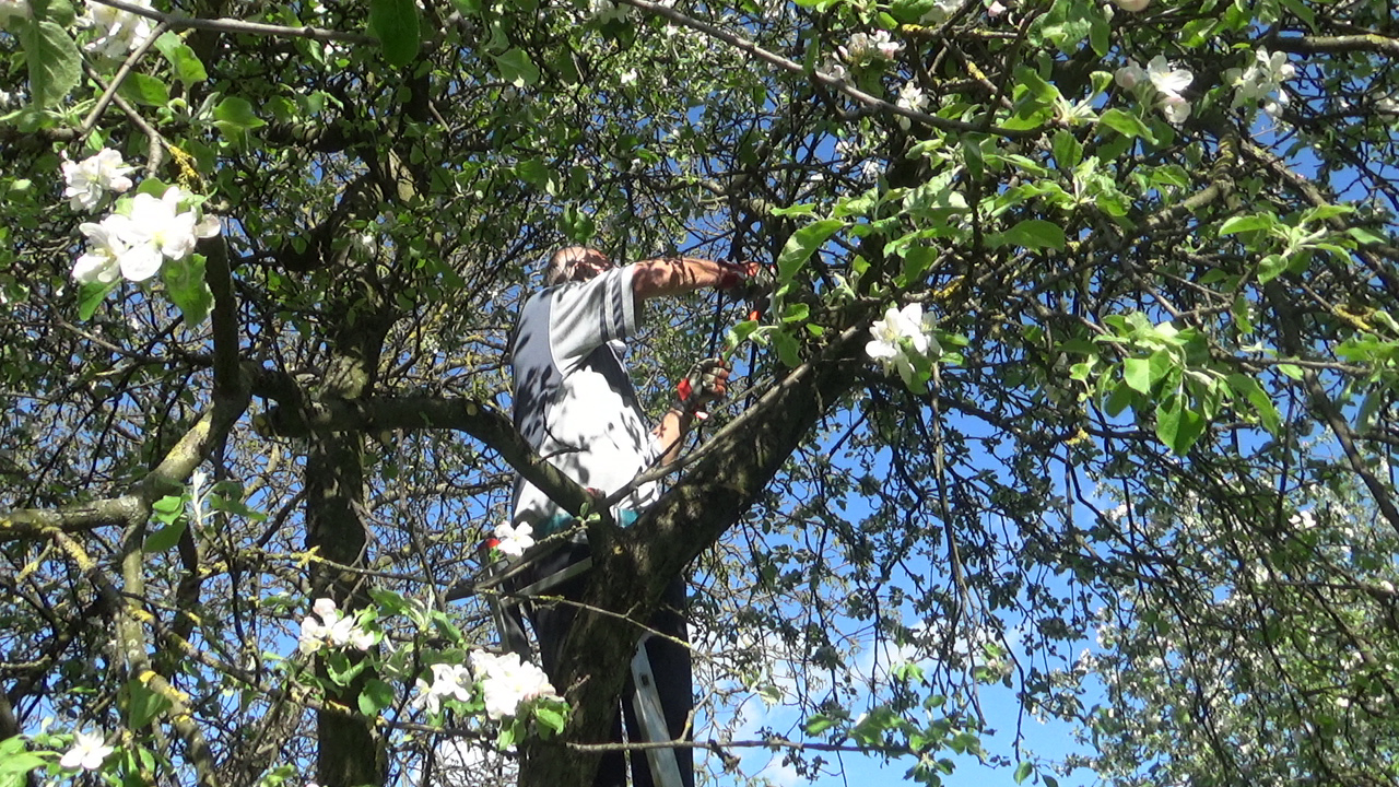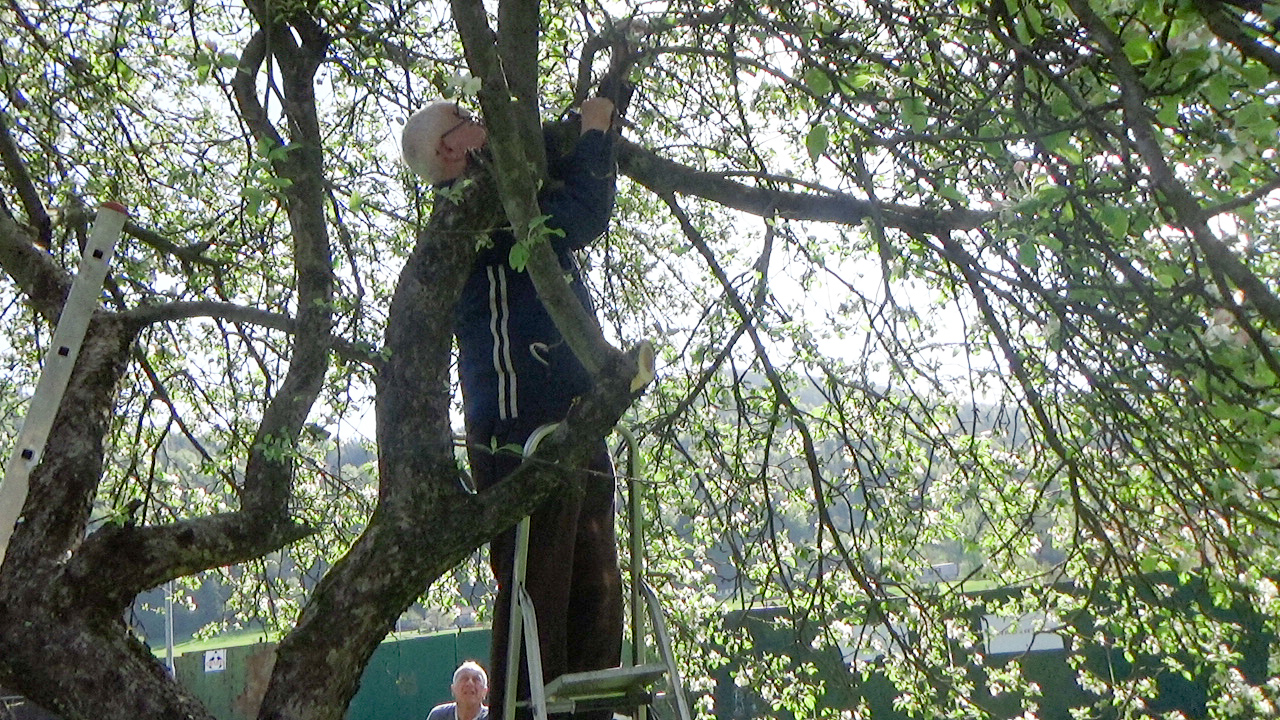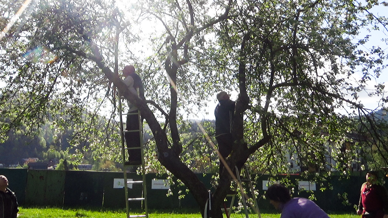 V soboto 16.aprila smo bili s strani vodje nazarskih  branjevcev gospe Anice Bider povabljeni, da prikažemo obrezovanje sadnega drevja. Ob tržnici Bohačev toplar v Nazarjah namreč rastejo tri sadna drevesa jablane. Dve sta starejši in jih je verjetno posadil prejšnji lastnik parcele, ki ja pozneje bila prodana za gradnjo stanovanjskega objekta. Tretje pa je ob izteku svojega mandata ob priliki Občinskega praznovanja leta 2012 slavnostno posadil g. dr. Danilo Turk. Drevo lepo raste in letos pričakujejo že prve plodove, če bodo vremenske prilike to dopuščale. Vso dogajanje pa je razvidno iz posnetkov.