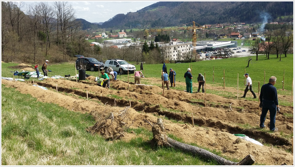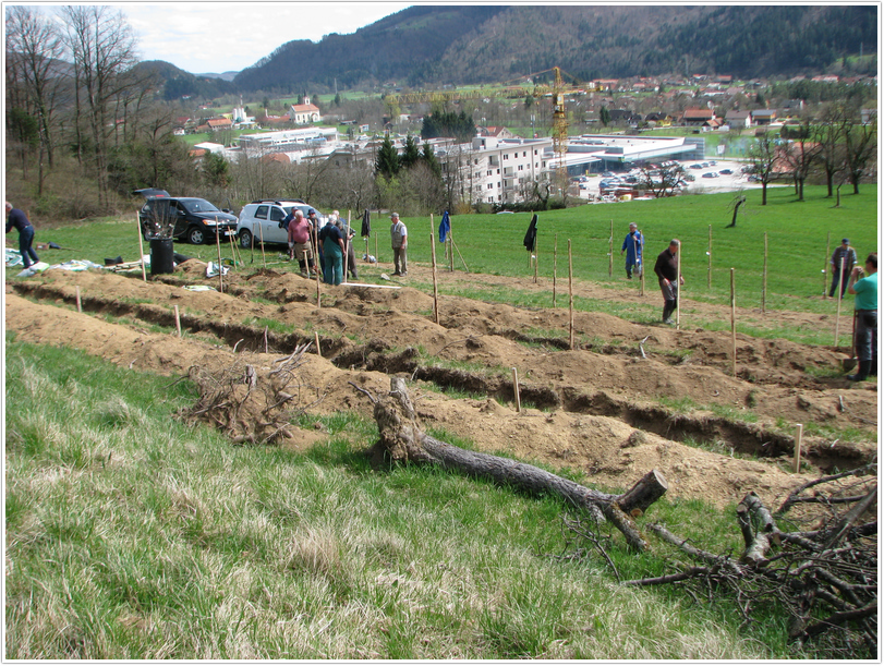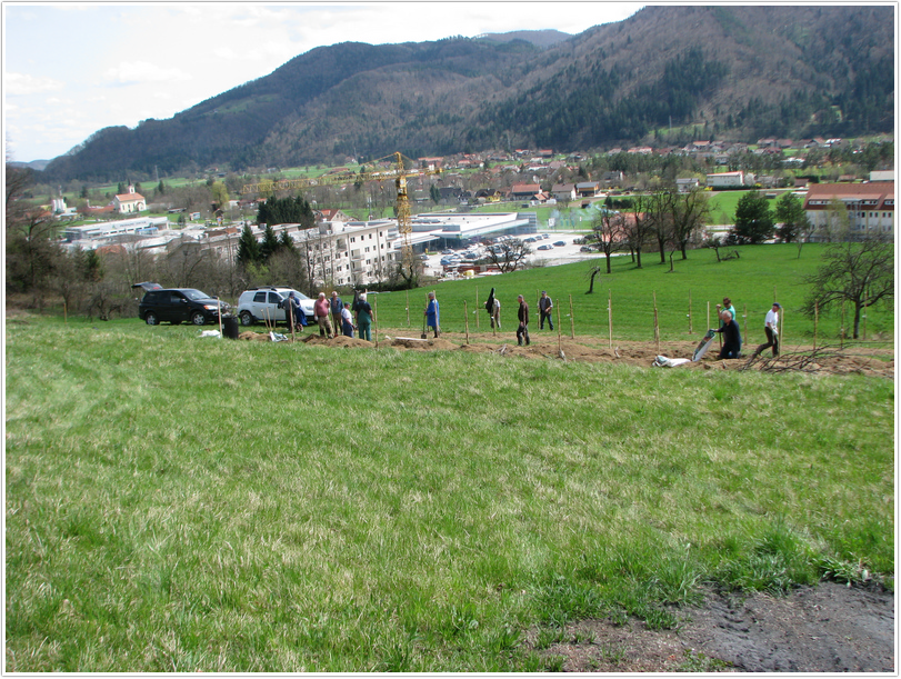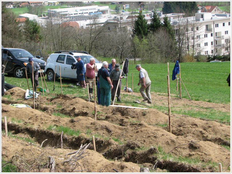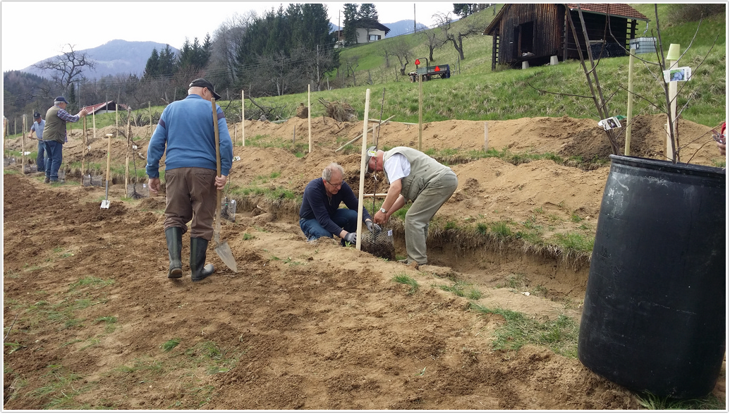 Ker je bil letošnji marec bolj hladen in moker smo morali z saditvijo drugega dela počakati do sedaj. To sredo smo posadili še preostanek dreves, ki so bila namenjena za saditev v plantažni kompleks. Za jesen in prihodnje leto pa ostaja še posaditev dreves vzgojenih na sejancu, ki bodo postala genska banka za prihodnje rodove.