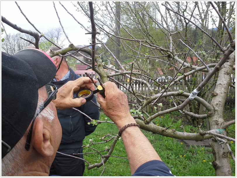 Po programu izobraževanja članov našega društva je bila organizirana delavnica “Cepljenje sadnega drevja” vodil jo je član našega društva g. Ločan Franci, ki je vešč teh opravil in ima tudi veliko izkušenj na področju cepljenja sadnih dreves. Najprej je prikazal vse najbolj pogoste načine cepljenja in pokomentiral vse dobre in slabe strani posameznih načinov cepljenja. Poudaril je, da moramo cepiče nabirati meseca februarja ob pojenjajoči luni in jih shranimo na temnem in hladnem prostoru z dovolj vlage, da se ne izsušijo. Cepimo pa potem, ko se že pretakajo sokovi in lubje postane muževno, to je v mesecu aprilu, ali v začetku maja. Avgusta pa je aktualno cepljenje na speče oko. Nekaj dogajanja je razvidno v foto galeriji.