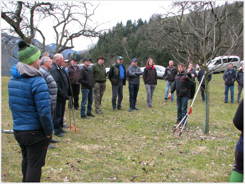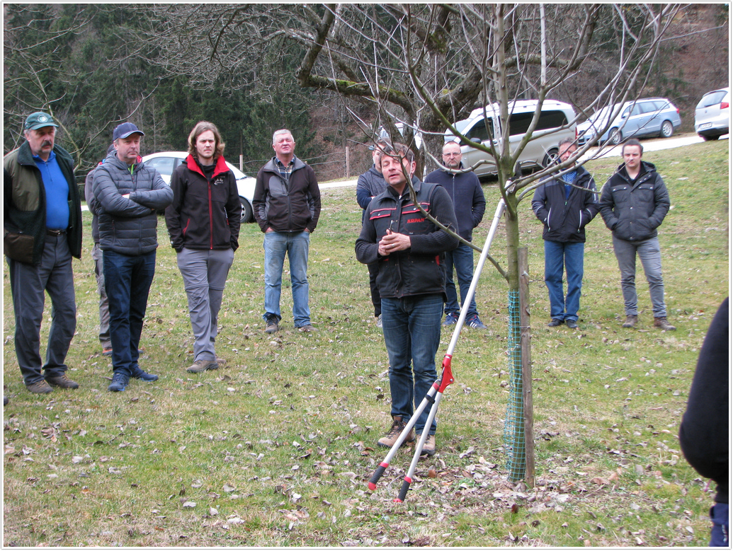 Naše društvo je pričelo z prvimi predavanji in prikazovanjem obrezovanja visokodebelnih jabolk in hrušk v letošnjem letu. Najprej smo pričeli v Občini G.Grad nato pa smo še istega dne opravili enak prikaz še v Občini Ljubno ob Savinji. Ob 9. uri dopoldan so nas  sprejeli gospodarji kmetije RAMŠAK. Potem pa se je vršil prikaz obrezovanja na njihovem sadnem drevju. Prav tako pa tudi na kmetiji OTER v popoldanskem času od 14. ure dalje. Na pri kmetiji se je zbralo 25 občanov, na drugi kmetiji pa 18 občanov, kar je ravno prav za dober prikaz. Prikaz pa je vršil diplomirani ing. agronomije g. Adrian Černelč Kozjansko jabolko.