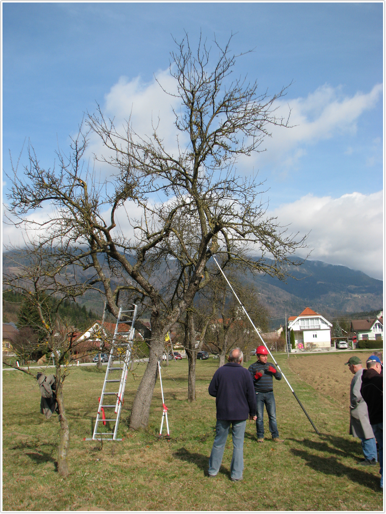 Ta konec tedna smo vršili prikaz obrezovanja sadnega drevja v soboto 9. marca od 9. ure v Občini Rečica ob Savinji v sadovnjaku kmetije Jeraj Markota – FREŠER. Prisotnih je bilo 8 udeležencev prikaza. Šolanje smo opravili na enem zelo visokem drevesu vrste bobovec, ter na enem nižjem vrste carjevič. Popoldan pa smo predstavitev ponovili v Občini Nazarje na kmetiji Praznik Franci – BIRŠ Tudi tukaj je bila predstavitev najprej na zelo visokem drevesu, ki ga je lanski pridelek zelo polomil. Nato pa je potekala predstavitev na nižjem drevesu vrste krivopecelj, ki je bil v zelo podivjani rasti. Prisotnih je bilo 22 udeležencev, kar nakazuje, da je to področje zanimivo za kmete in posameznike. Zahvaljujemo se obema lastnikoma za prijazen sprejem in pogostitev na koncu predavanja.