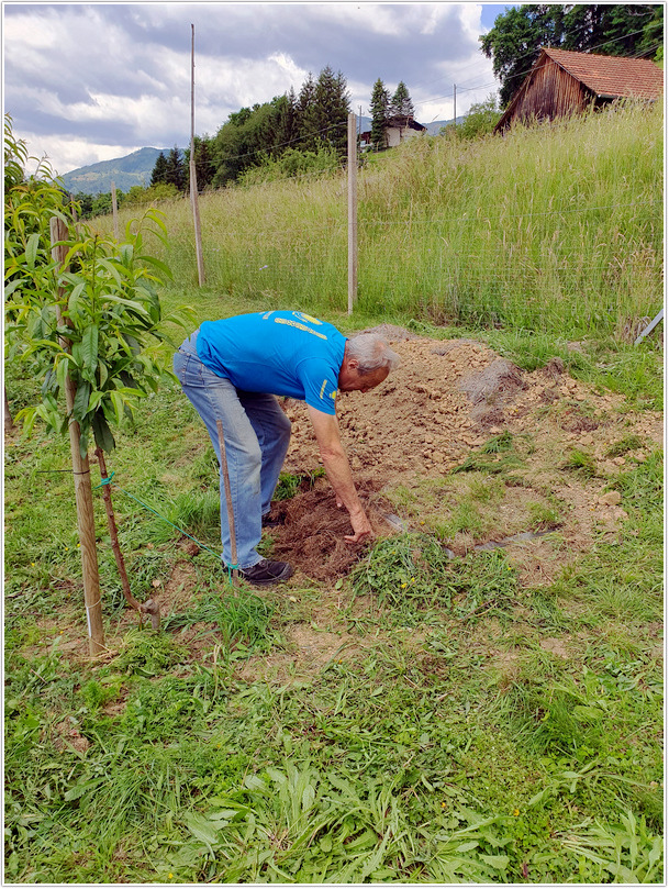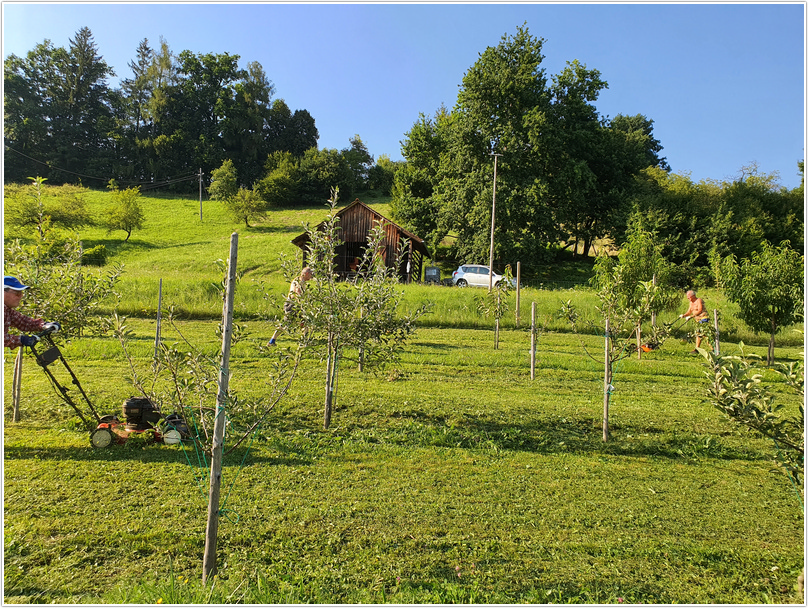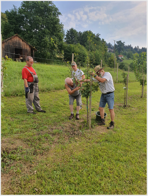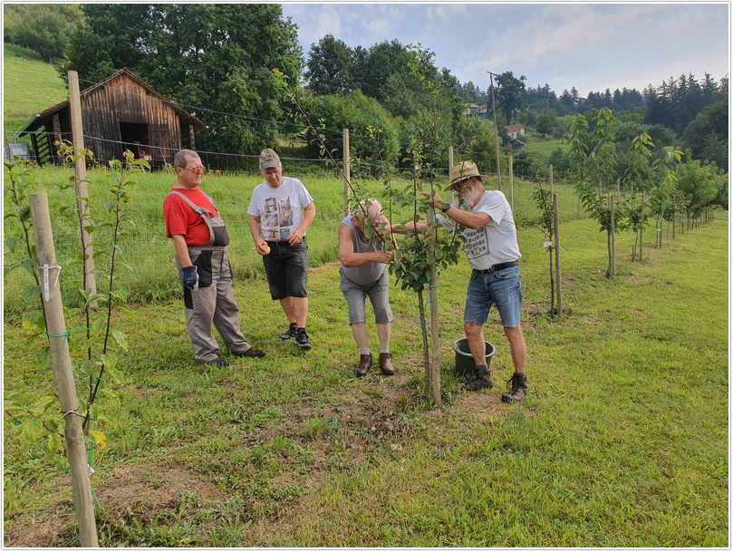 Vendar narava ne pozna karantene in naš nasad pod Rožnikom je rasel in klical po ureditvi. Takoj ko se je situacija malo umirila smo člani Upravnega odbora našega društva pričeli z dejavnostmi, da se je pokosila trava, poškropilo drevje, ki je bilo napadeno od listnih uši in ostalih bolezni. Poleg vsega je v našem nasadu naredil veliko škodo tudi voluhar, ki je spodjedel kar nekaj dreves.
